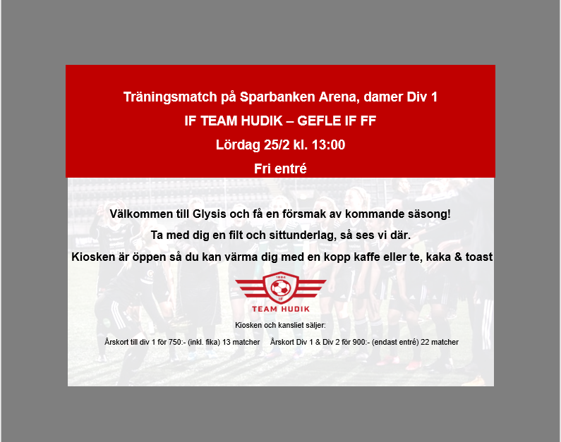 • Välkommen på träningsmatch på lördag