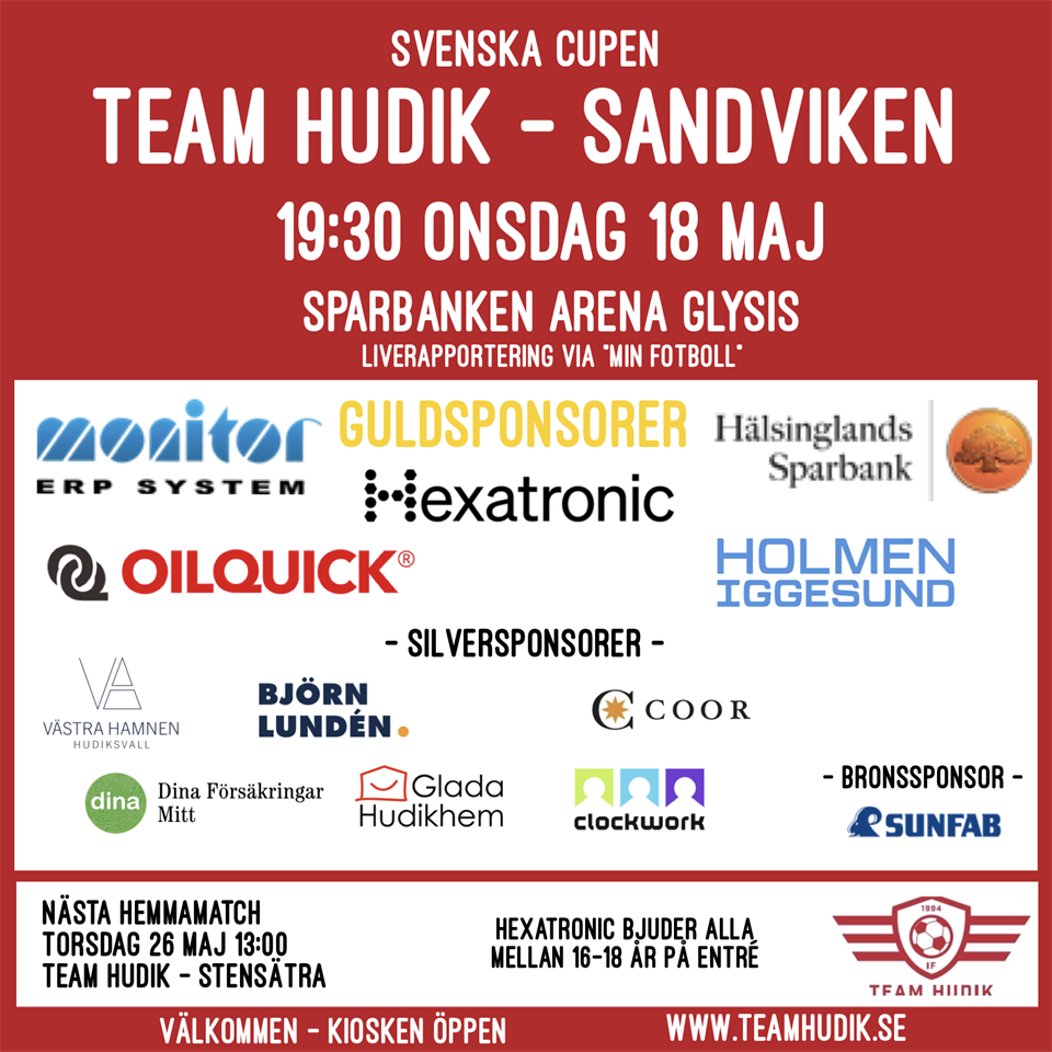 • Match i Svenska Cupen onsdag 18 maj 19:30