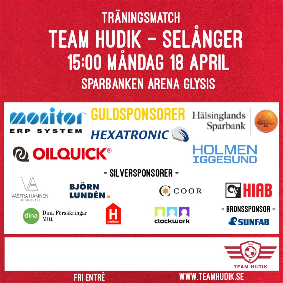 Team Hudik möter Selånger på Glysis konstgräs måndag 18 april kl 15:00 i sista matchen innan seriepremiären. Infart från Humlegatan och parkering bakom läktaren pga hockeymatch Div 1 Dam / TH 1 13 apr 2022 0kommentarer