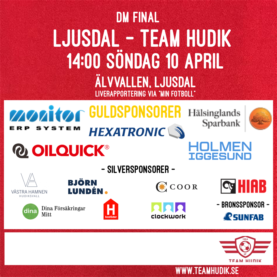 IF Team Hudik spelar DM-final mot Ljusdals IF på Älvvallens konstgräs i Ljusdal. Matchen startar 14:00 Div 1 Dam / TH 1 6 apr 2022 0kommentarer