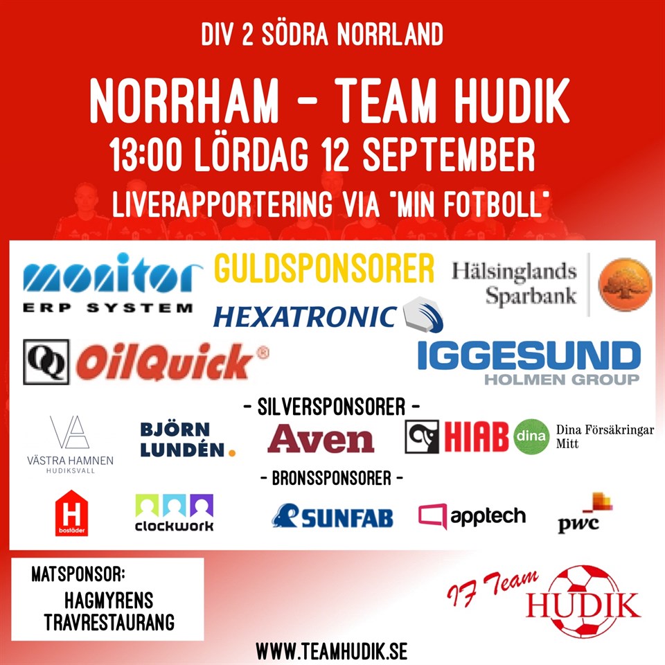 På lördag kan du följa matchen mot Norrham, som spelas på bortaplan, via appen "Min Fotboll". Eller om du så vill, på plats på Vifors IP. Matchstart kl 13.00. IF Team Hudik 10 sep 2020 0kommentarer